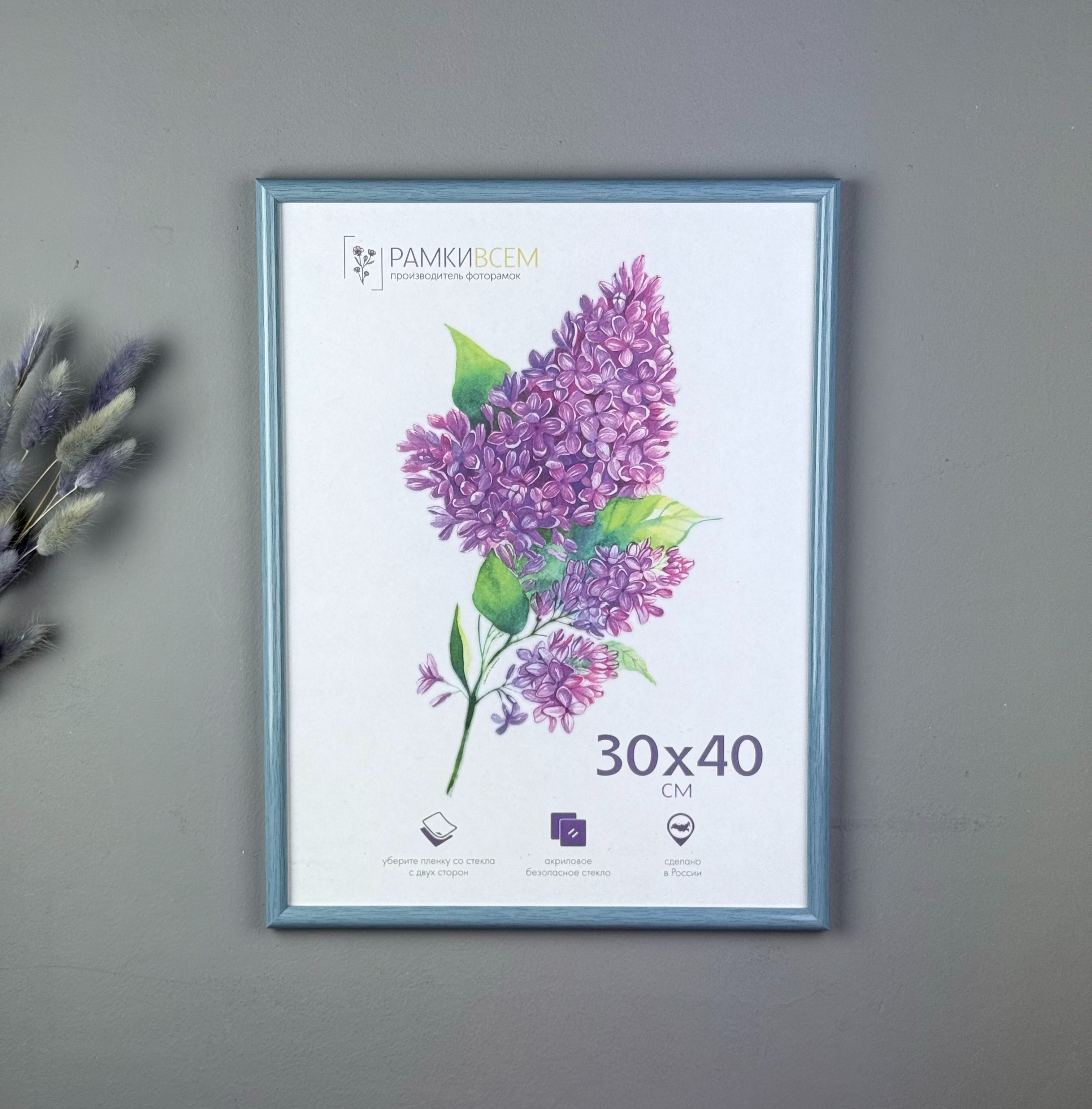 Акриловое стекло защитит изображение от повреждений и пыли. Имеет высокую пропускную способность света как у обычного стекла, но при этом обладает важным преимуществом: не разобьется на мелкие кусочки в случае механического повреждения. Перед использованием снимите защитную пленку с двух сторон.
