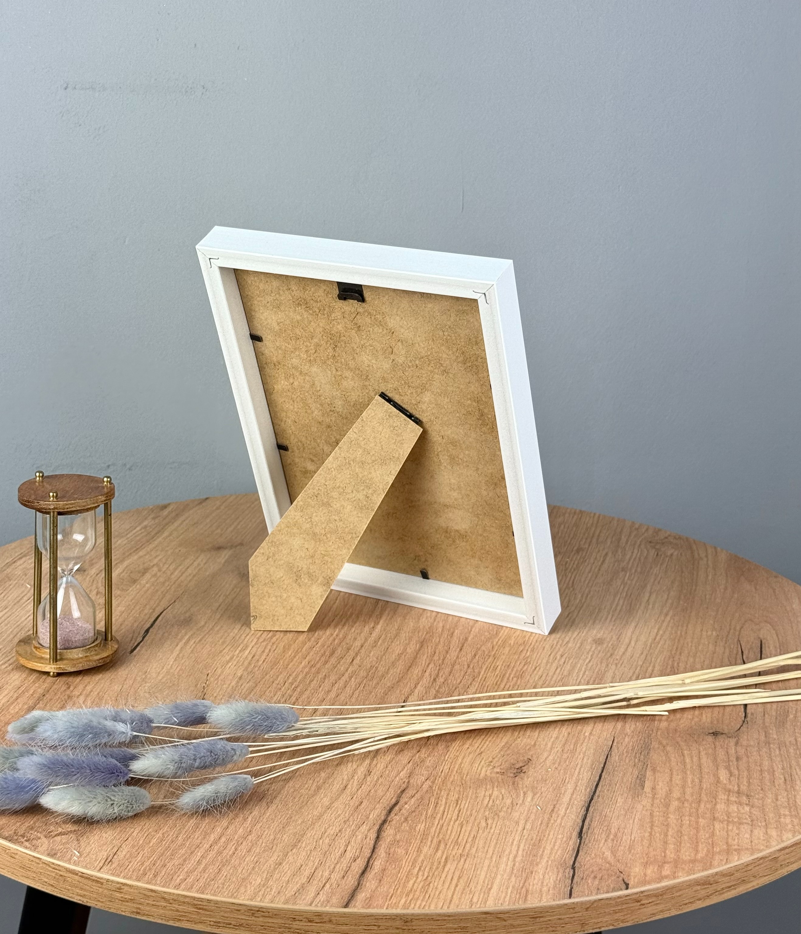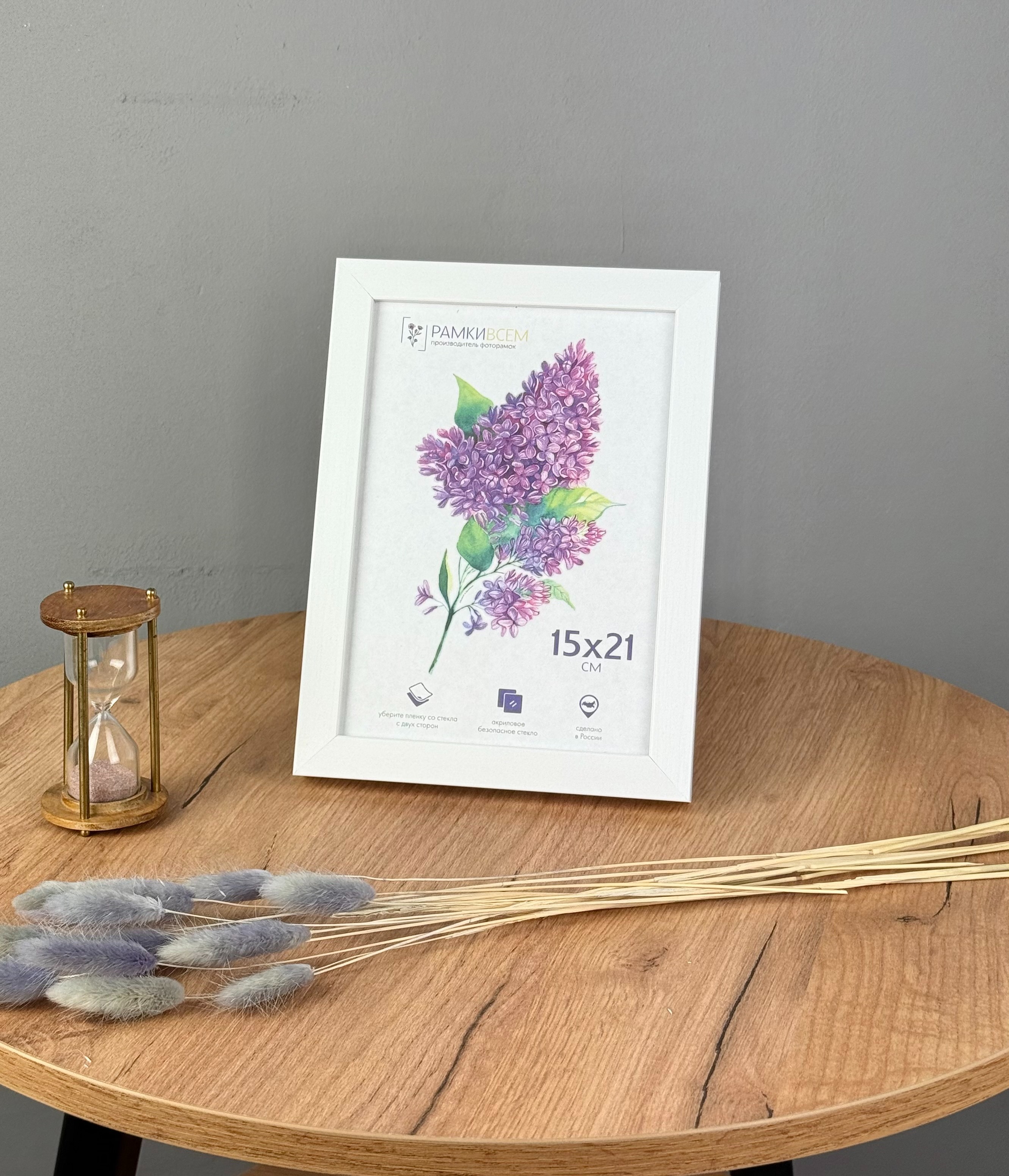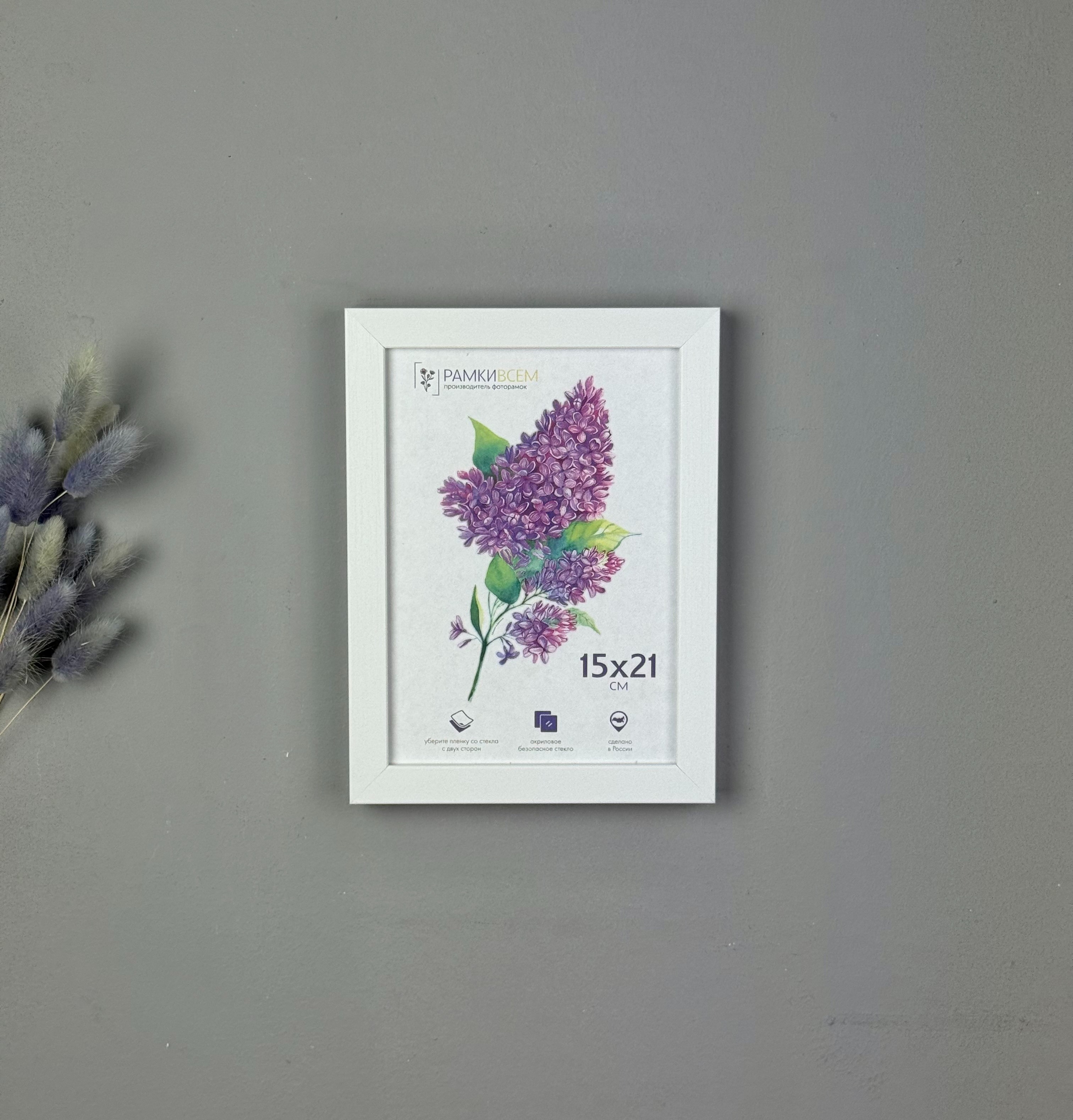 Рамка для фотографий формата 15х21 см. Багет пластик ПВХ. Задник оргалит с подставкой на стол и подвесами для крепления на стену. Акриловое стекло для защиты фотографии от механических повреждений.